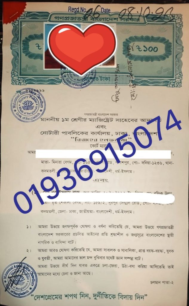 ঢাকা জজ কোর্ট সংলগ্ন অফিসিয়াল কাজী অফিস আমরা ঢাকা জজ কোর্টের নিকটস্থ একটি বিশ্বস্ত ও অভিজ্ঞ Kazi Office, যেখানে কোর্ট ম্যারেজ, কাবিন রেজিস্ট্রেশন, ডিভোর্স রেজিস্ট্রেশন এবং সকল ধরনের ম্যারেজ ও ডিভোর্স সার্টিফিকেট সংক্রান্ত সেবা দ্রুত, নিরাপদ ও ঝামেলামুক্তভাবে প্রদান করা হয়। Our Services | আমাদের সেবাসমূহ ✔ Court Marriage & Kabín Registration ✔ Divorce (Talak) […]